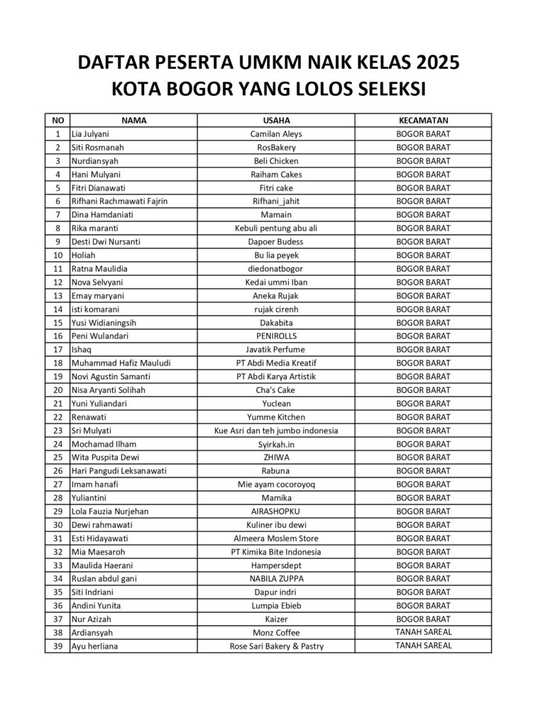 Sebuah program unggulan dari Provinsi Jawa Barat, khususnya di Kota Bogor untuk para pelaku UMKM yang diharapkan melahirkan UMKM yang berkualitas melalui program UMKM Naik Kelas